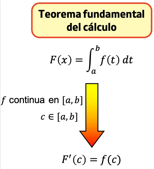 La fórmula del teorema fundamental del cálculo es la siguiente: